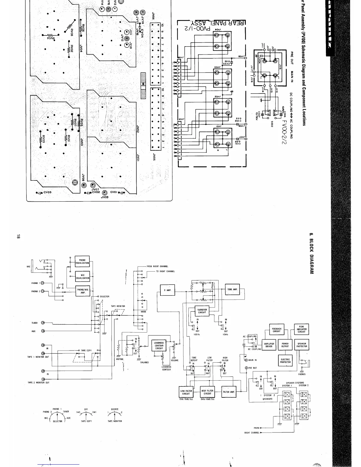 Marantz 1180DC - Relay Assembly (PNOO) Schematic and Component Locations; Rear Panel Assembly (PV00) Schematic and Component Locations; Block Diagram