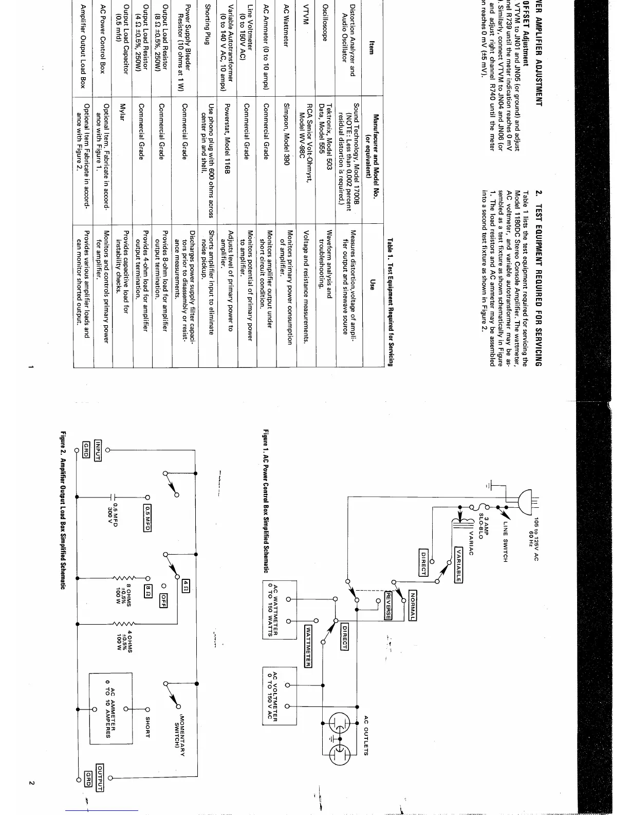 Marantz 1180DC - Power Amplifier Adjustment; Test Equipment for Servicing