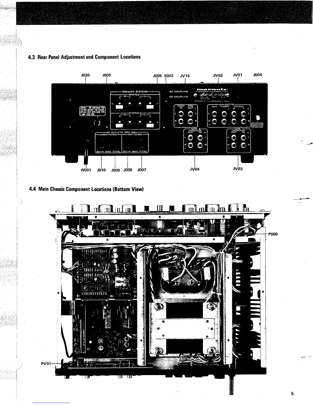 Marantz 1180DC - Rear Panel Adjustment and Component Locations; Main Chassis Component Locations (Bottom View)