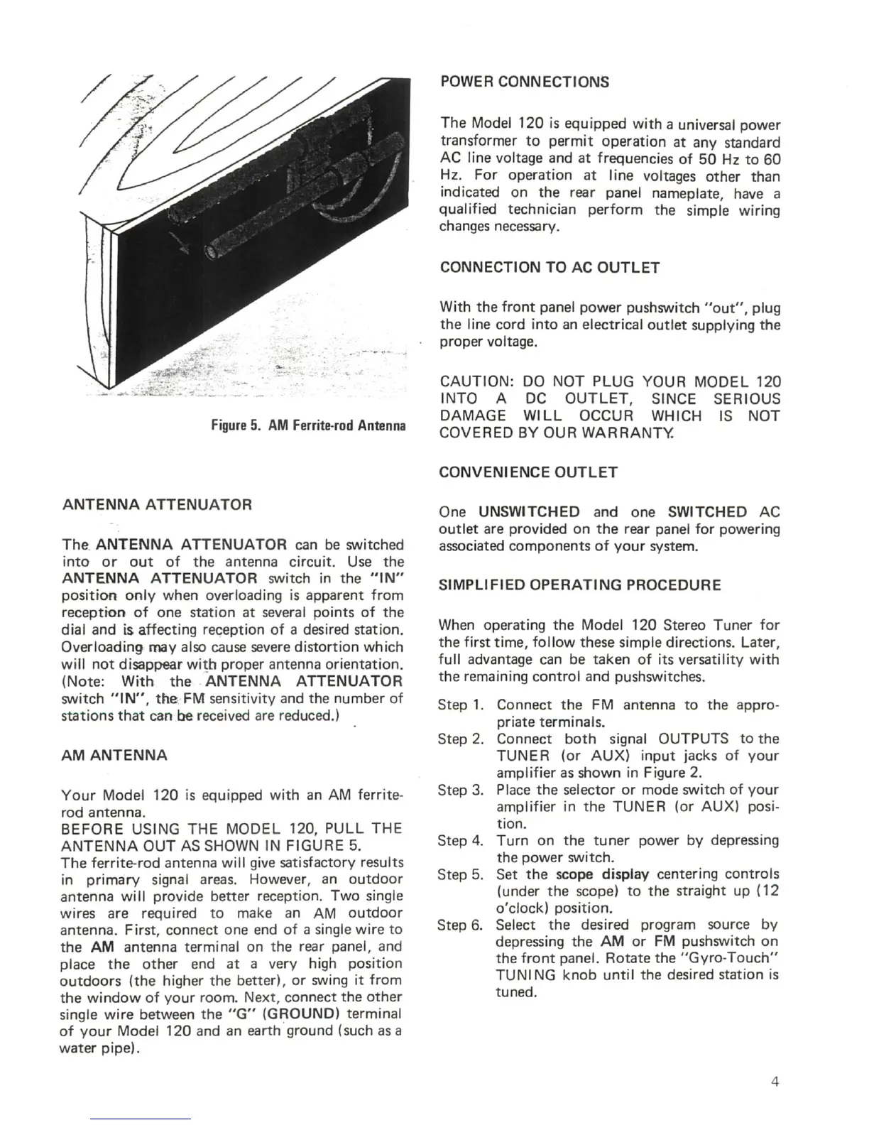 Marantz 120 - Power Connections; Simplified Operating Procedure