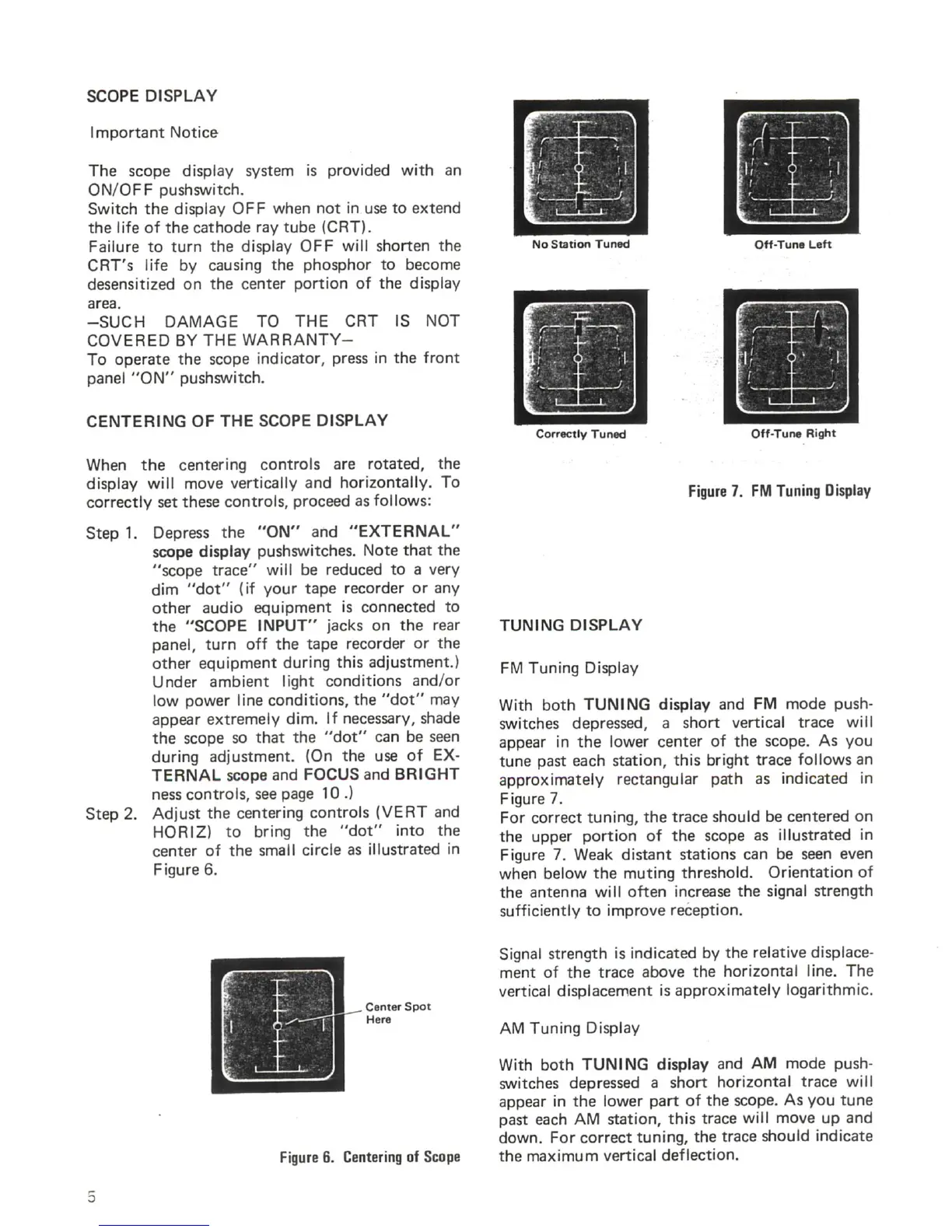 Marantz 120 - Scope Display; Centering of the Scope Display; Tuning Display