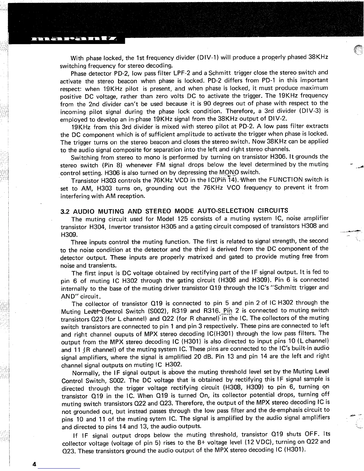 Marantz 125 - AUDIO MUTING AND STEREO MODE AUTO-SELECTION CIRCUITS