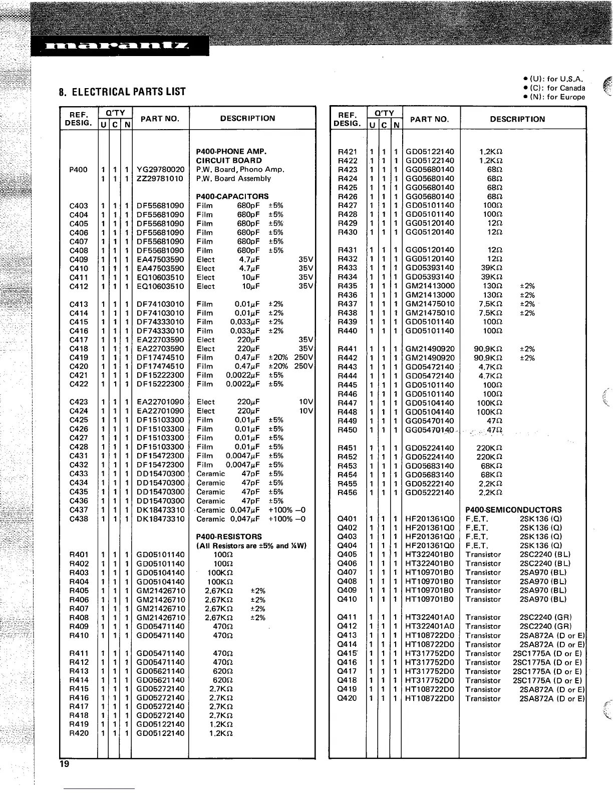Marantz 1300DC - Electrical Parts List
