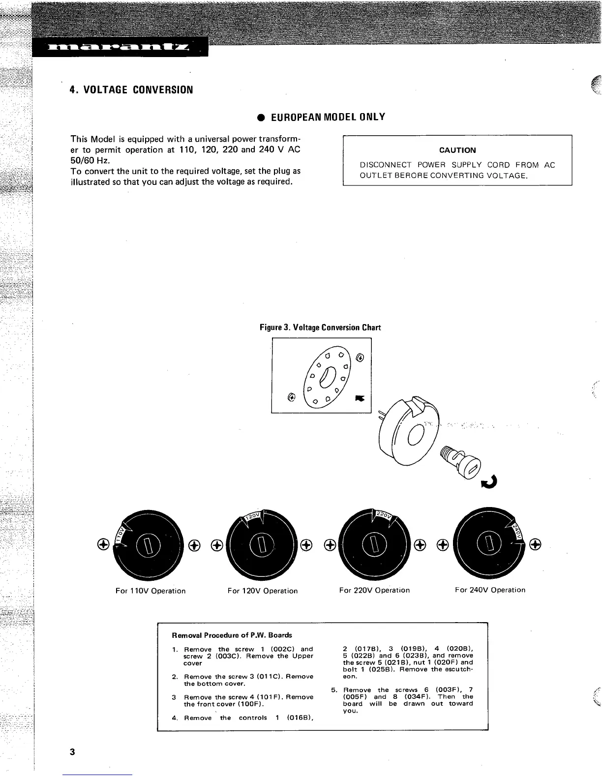 Marantz 1300DC - Voltage Conversion; European Model Specifics