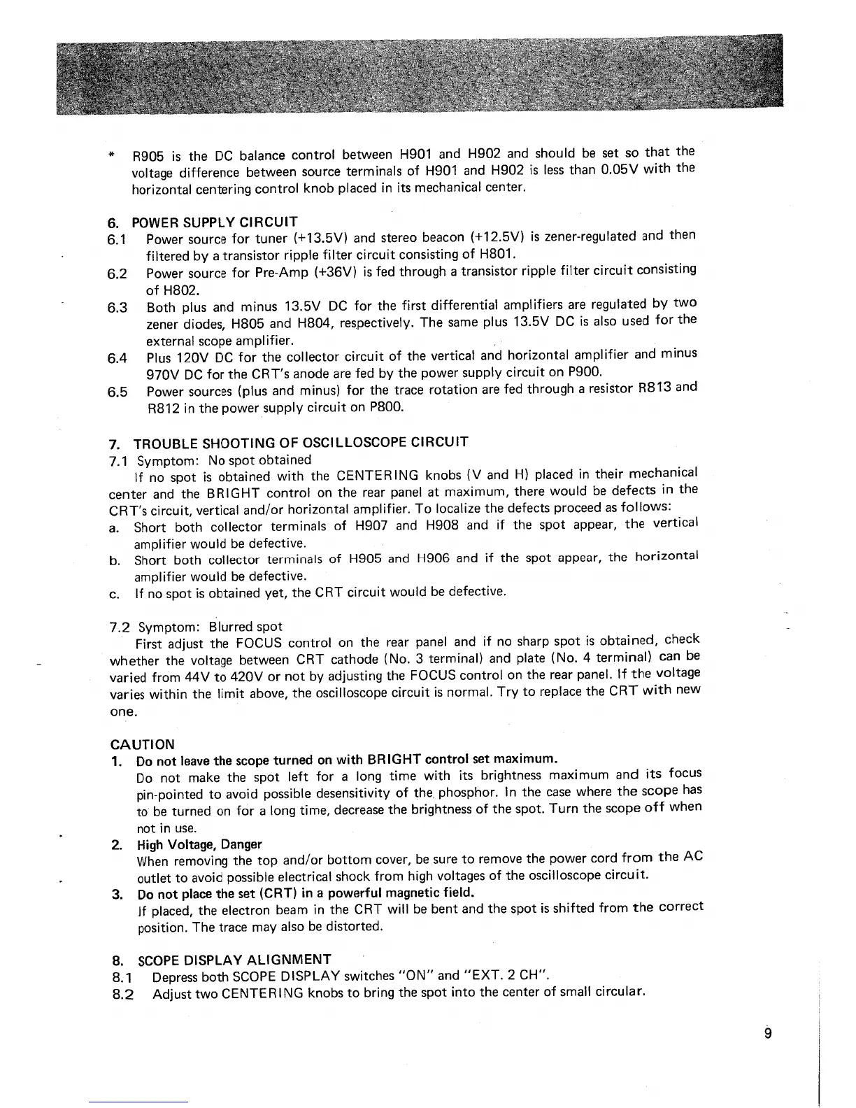 Marantz 150 - Power Supply Circuit; Oscilloscope Circuit Troubleshooting; Troubleshooting: No Spot Obtained; Troubleshooting: Blurred Spot