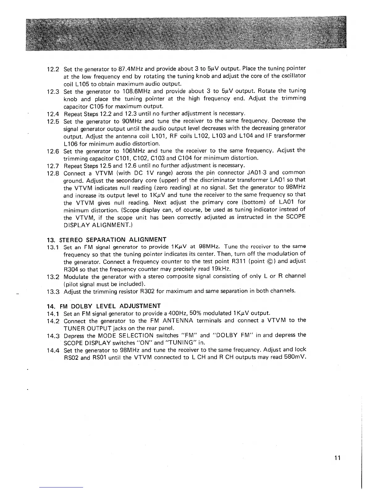 Marantz 150 - FM Alignment Procedures; Stereo Separation Alignment