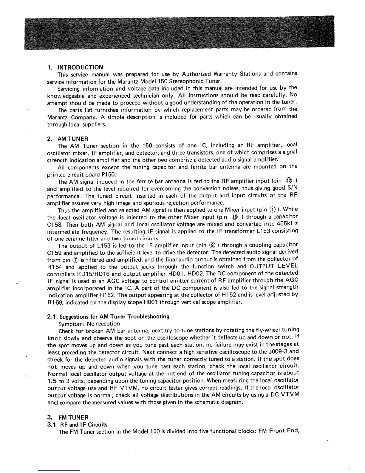 Marantz 150 - Marantz Model 150 AM Tuner Operation; AM Tuner Troubleshooting Guide; Marantz Model 150 FM Tuner Operation; FM Tuner RF and IF Circuits