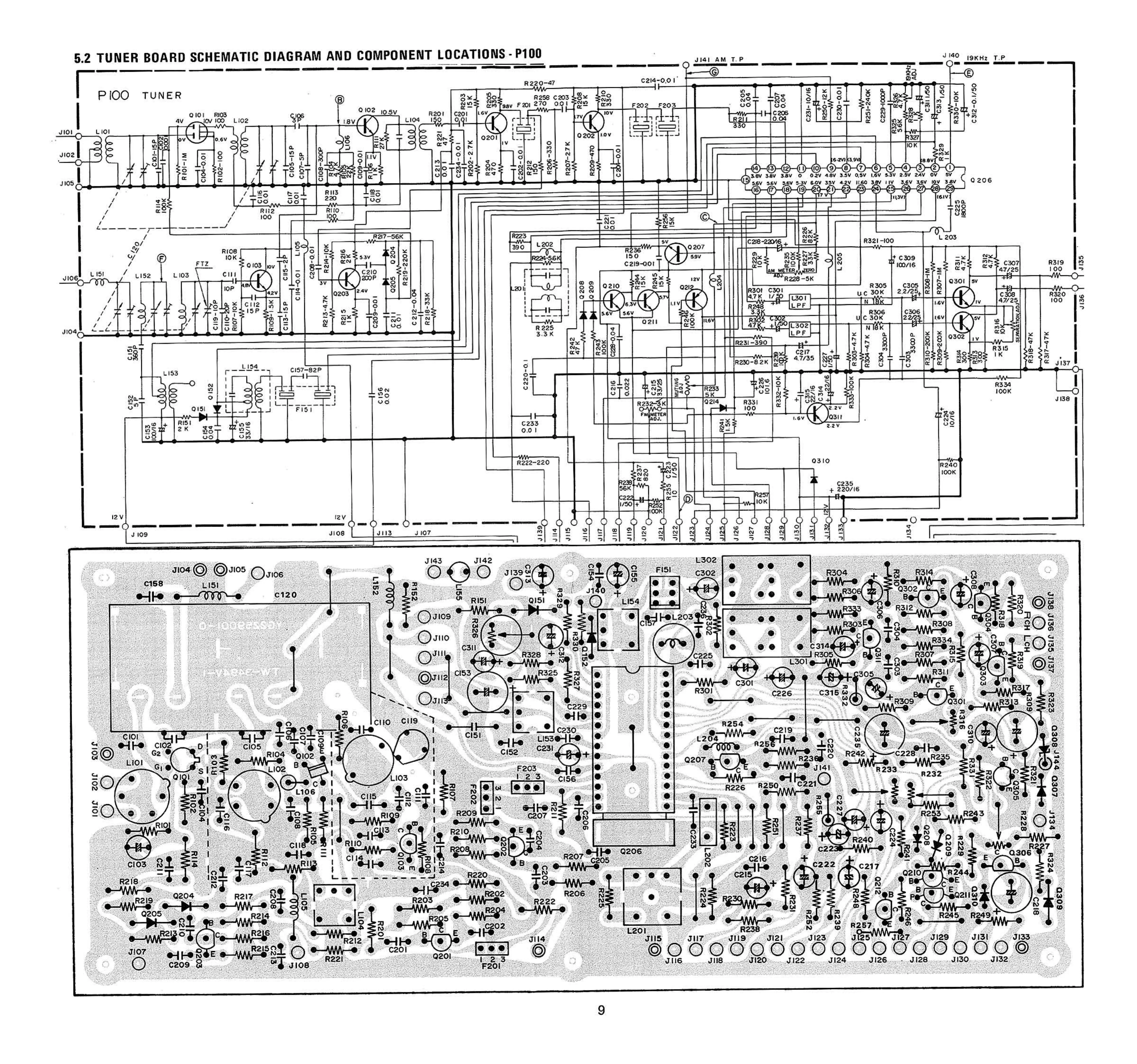 Marantz 1515 - Tuner Board Schematic Diagram and Component Locations - P100; Main Amp & Power Supply Board Schematic Diagram and Component Locations - P700