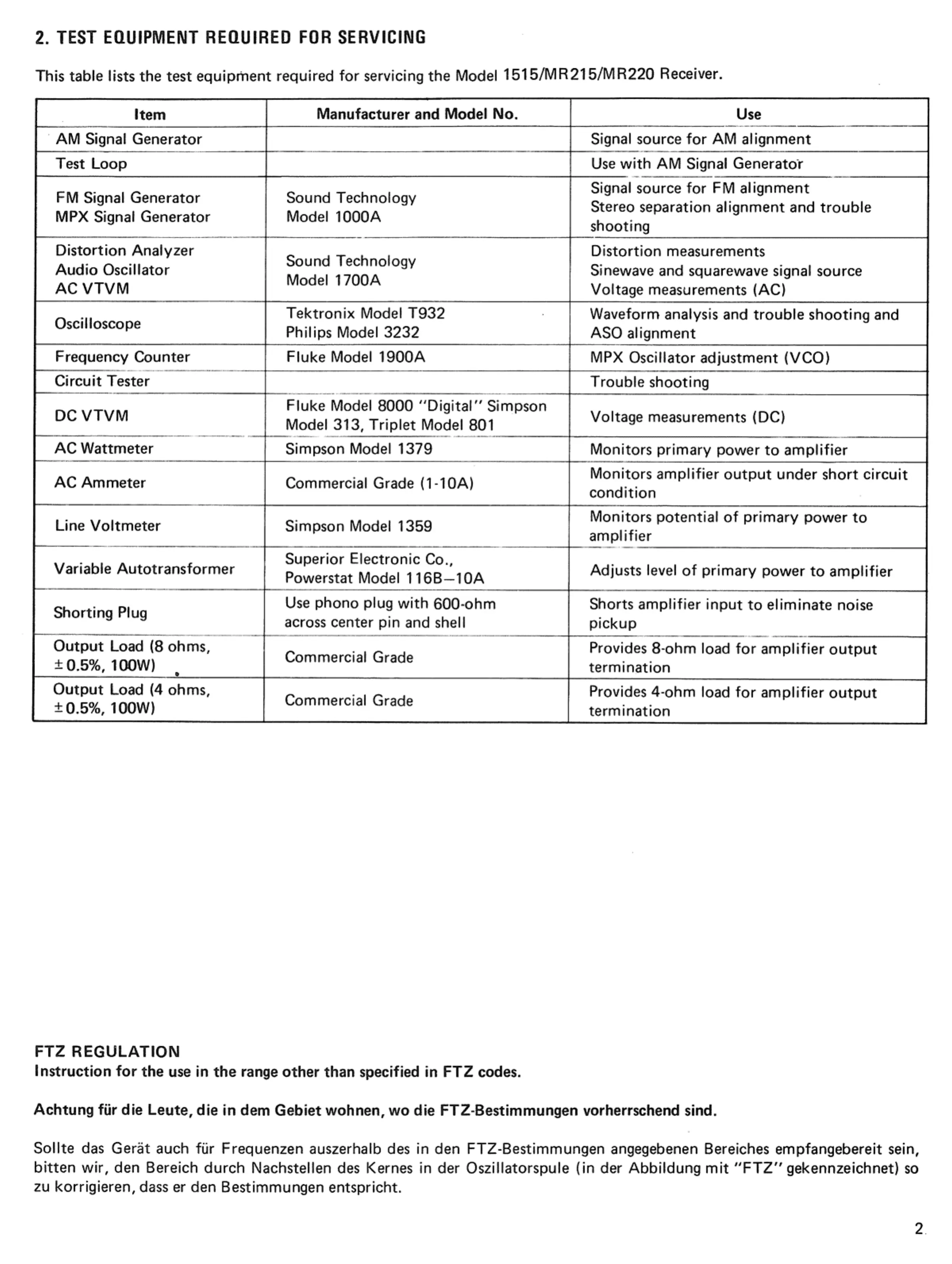 Marantz 1515 - Test Equipment Required for Servicing