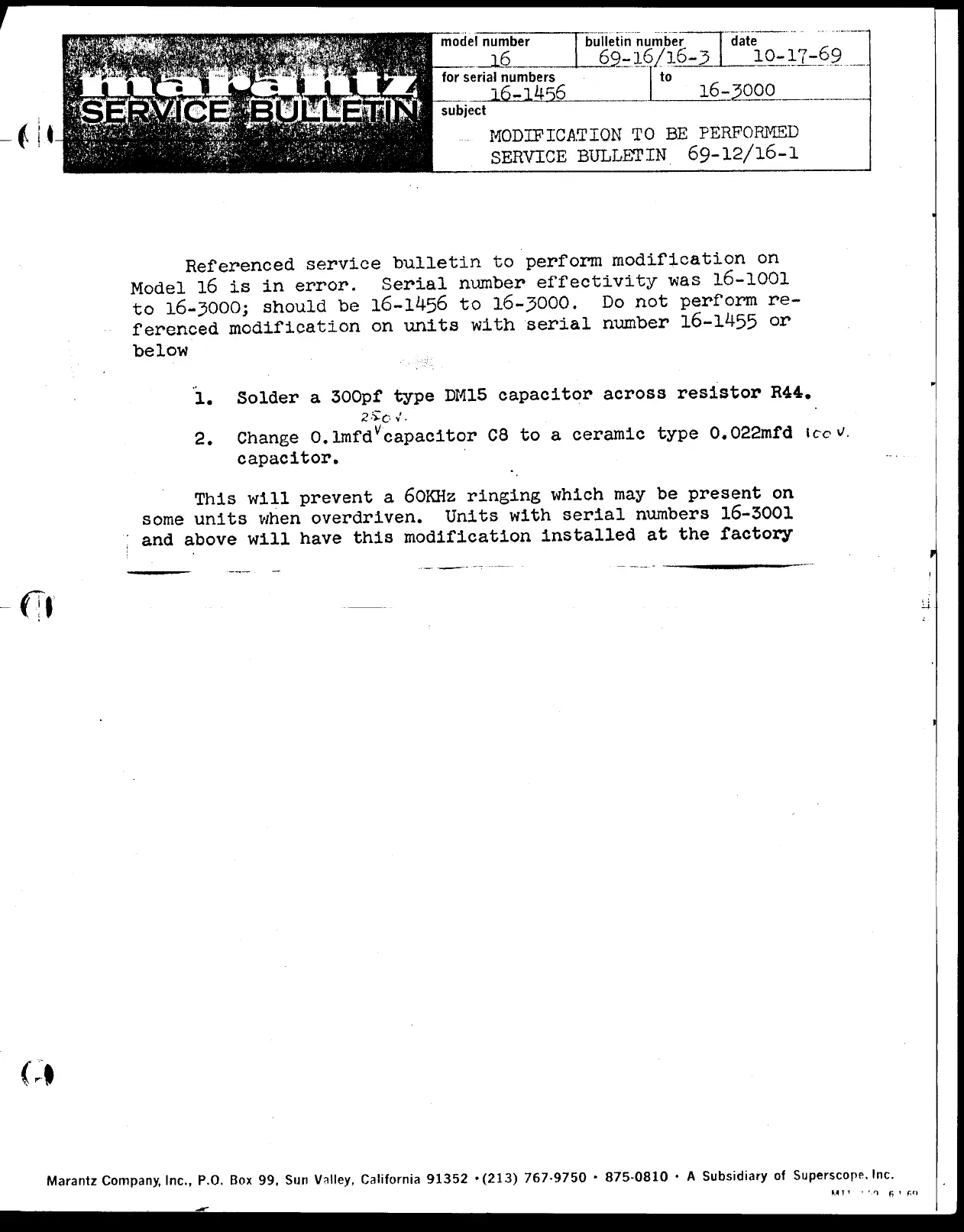 Marantz 16 - Reiterate Modification Steps
