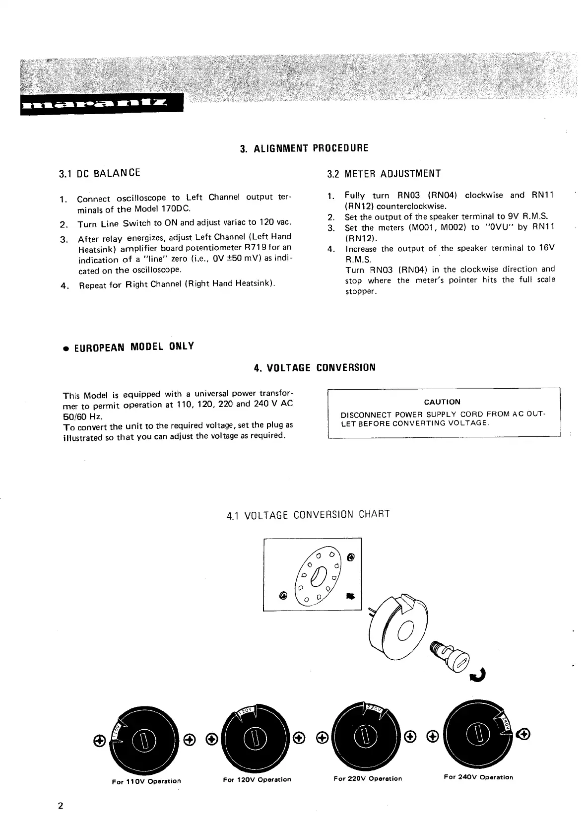 Marantz 170DC - Alignment Procedure; DC Balance; Meter Adjustment