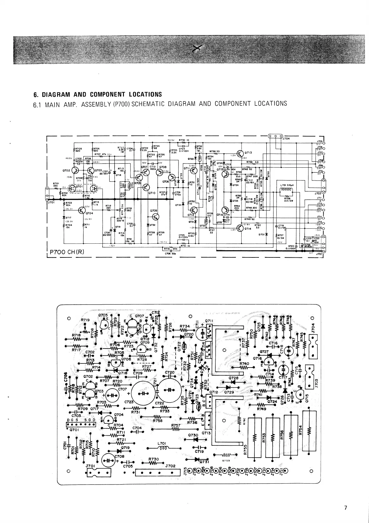Marantz 170DC - Diagram and Component Locations; Main Amp. Assembly (P700) Schematic Diagram and Component Locations; Peak Indicator Assembly (PNOO) Schematic Diagram and Component Locations