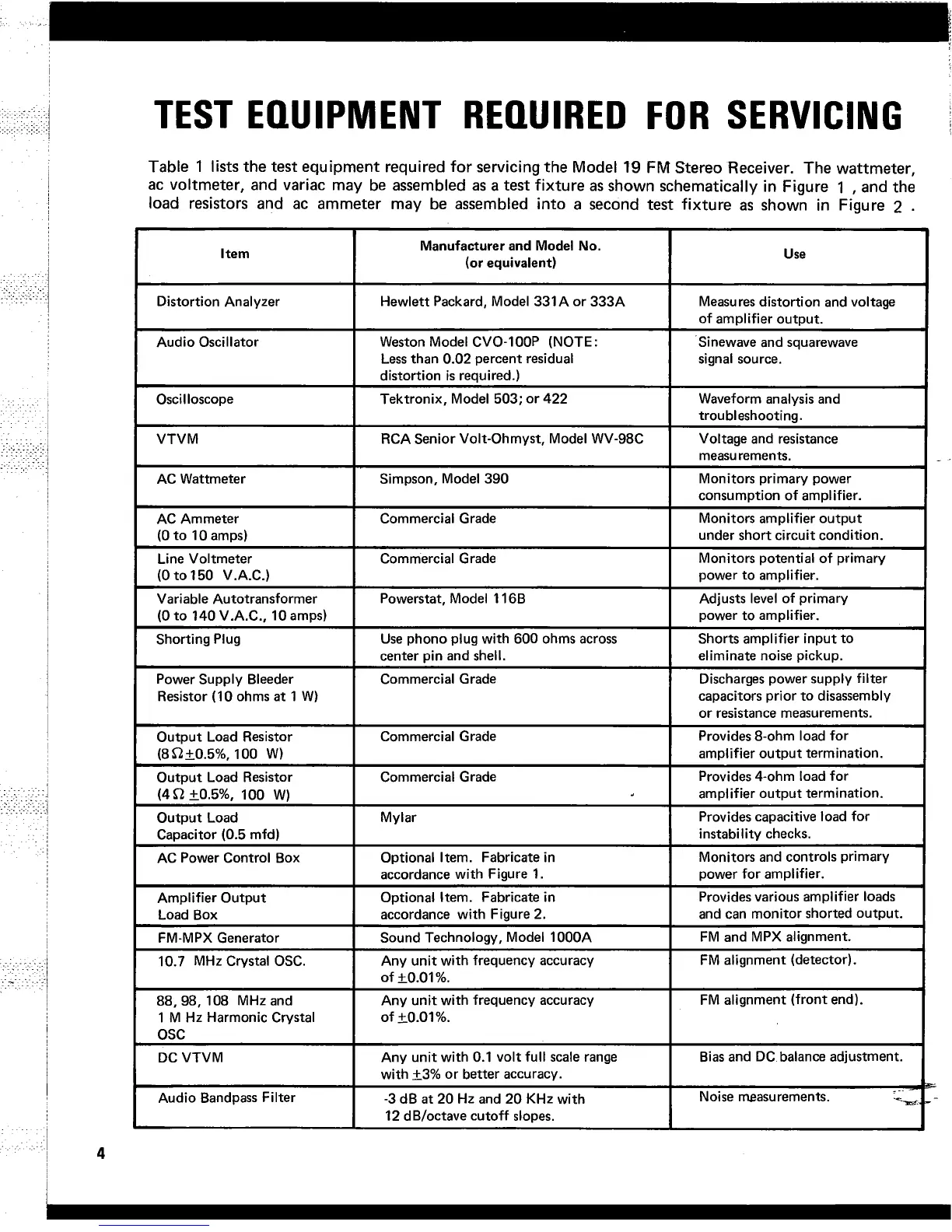 Marantz 19 - Test Equipment Required for Servicing