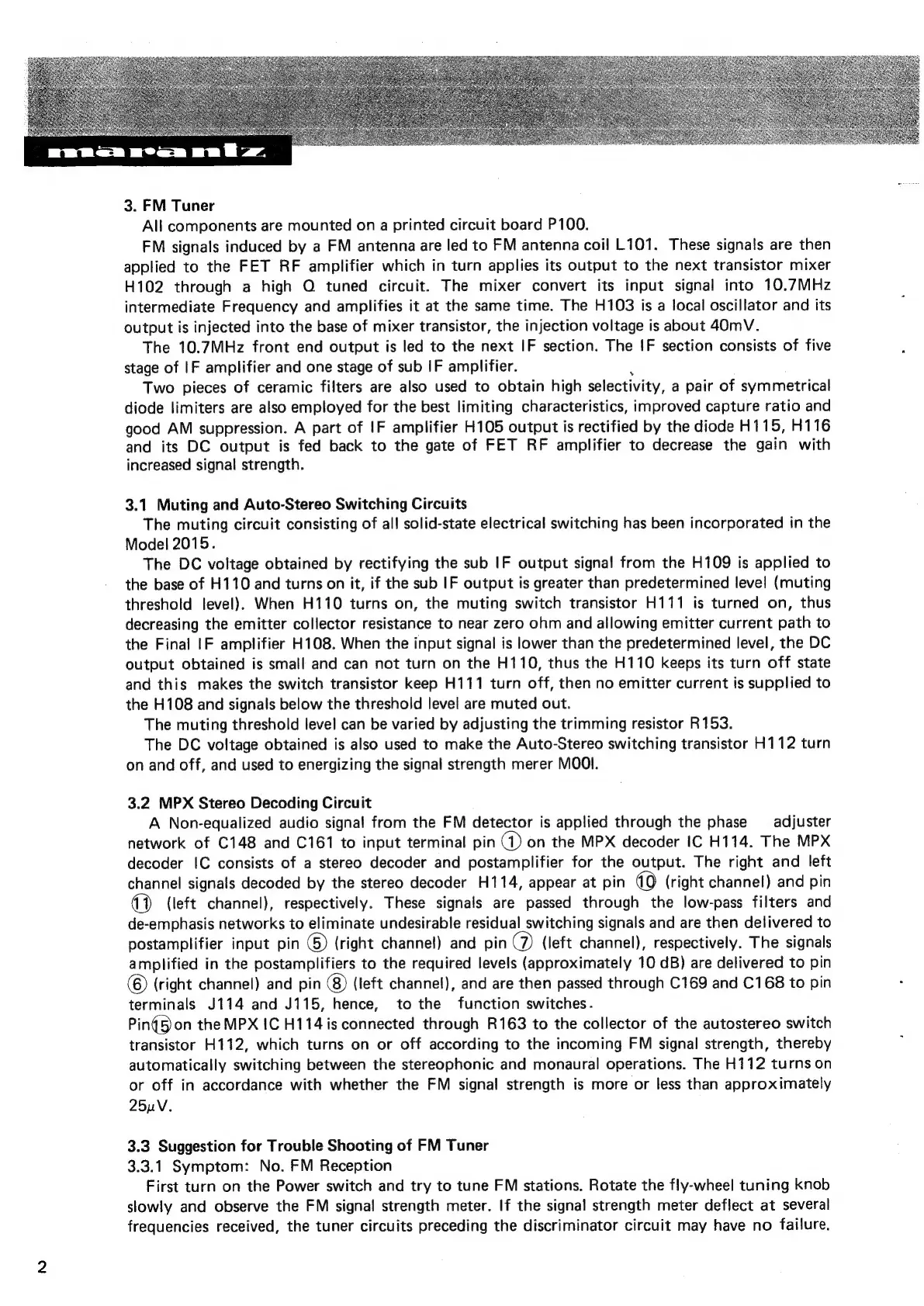Marantz 2015 - FM Tuner; Suggestion for Trouble Shooting of FM Tuner