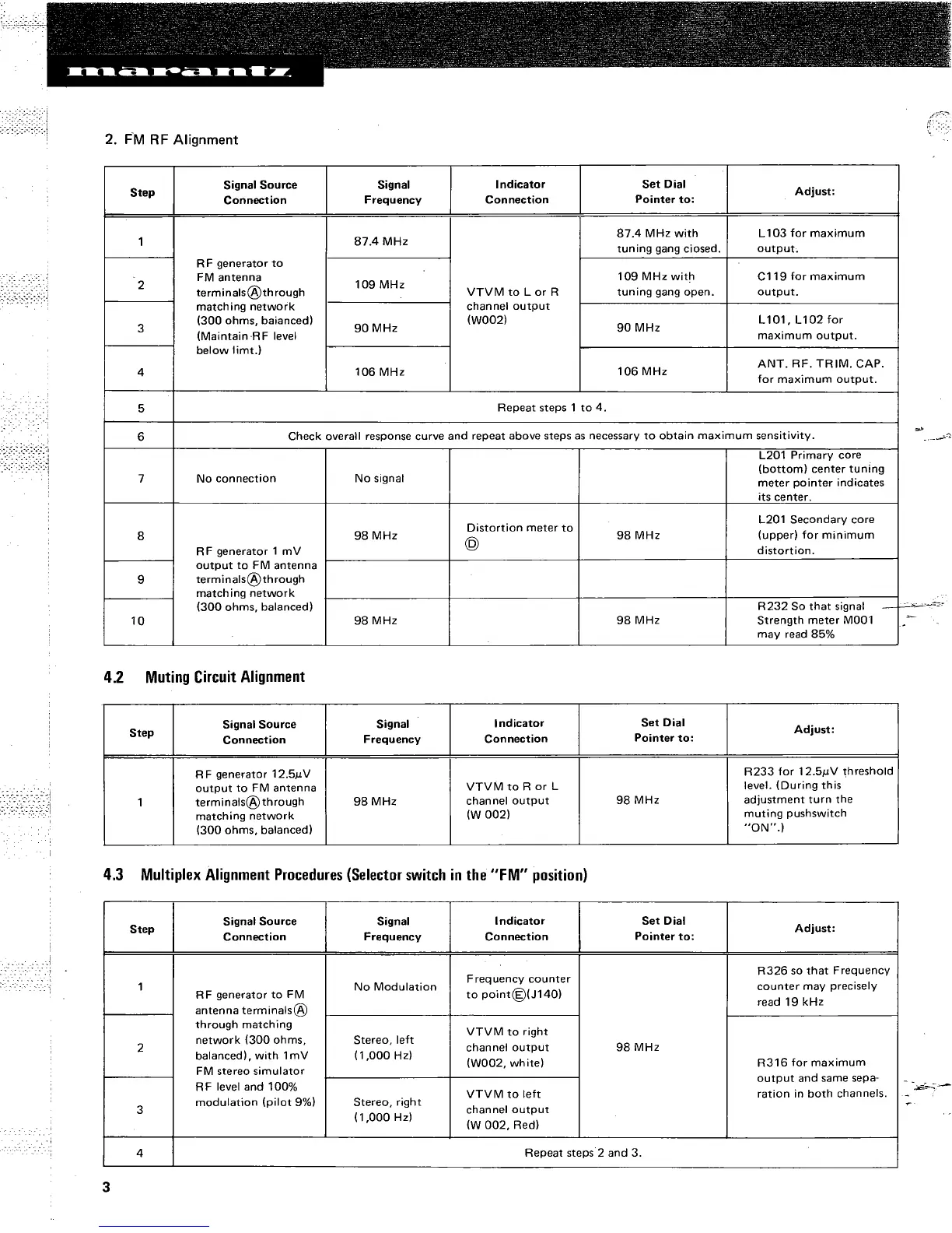 Marantz 2050 - FM RF Alignment; Muting Circuit Alignment; Multiplex Alignment Procedures (Selector switch in the FM position)