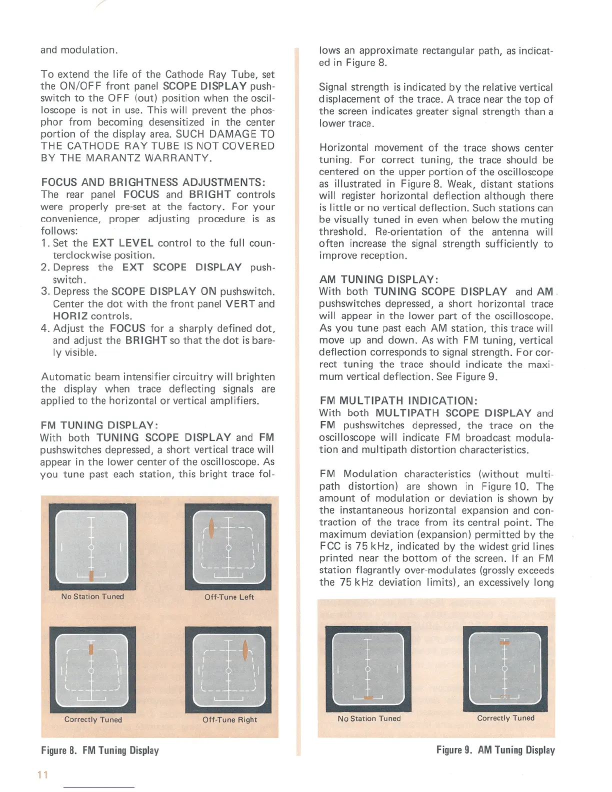 Marantz 2130 - OSCILLOSCOPE DISPLAY MODES; Tuning Displays: FM and AM Signal Indication; FM Multipath Indication and Antenna Alignment