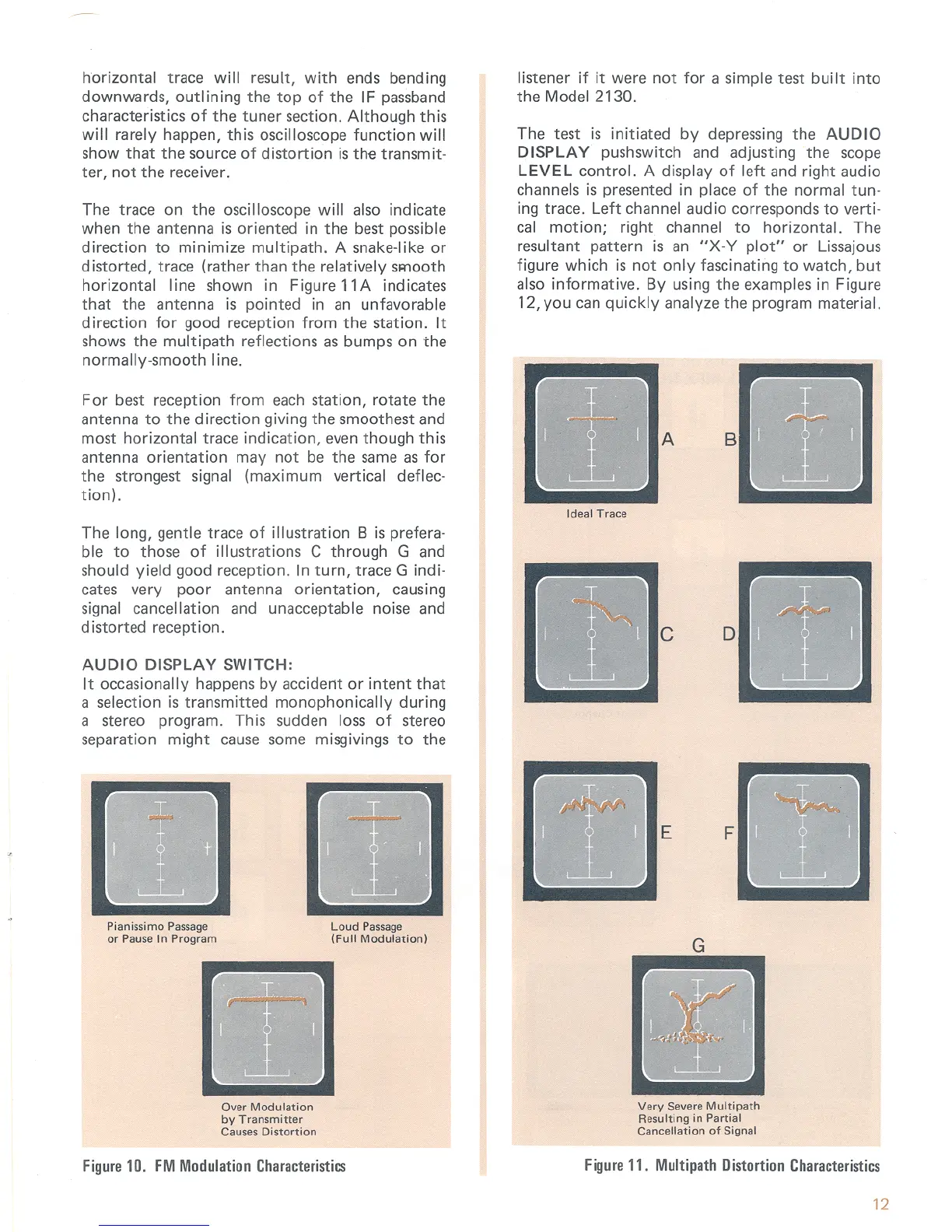 Marantz 2130 - AUDIO SIGNAL ANALYSIS; FM Modulation Characteristics Display; Audio Display Switch for Stereo Analysis