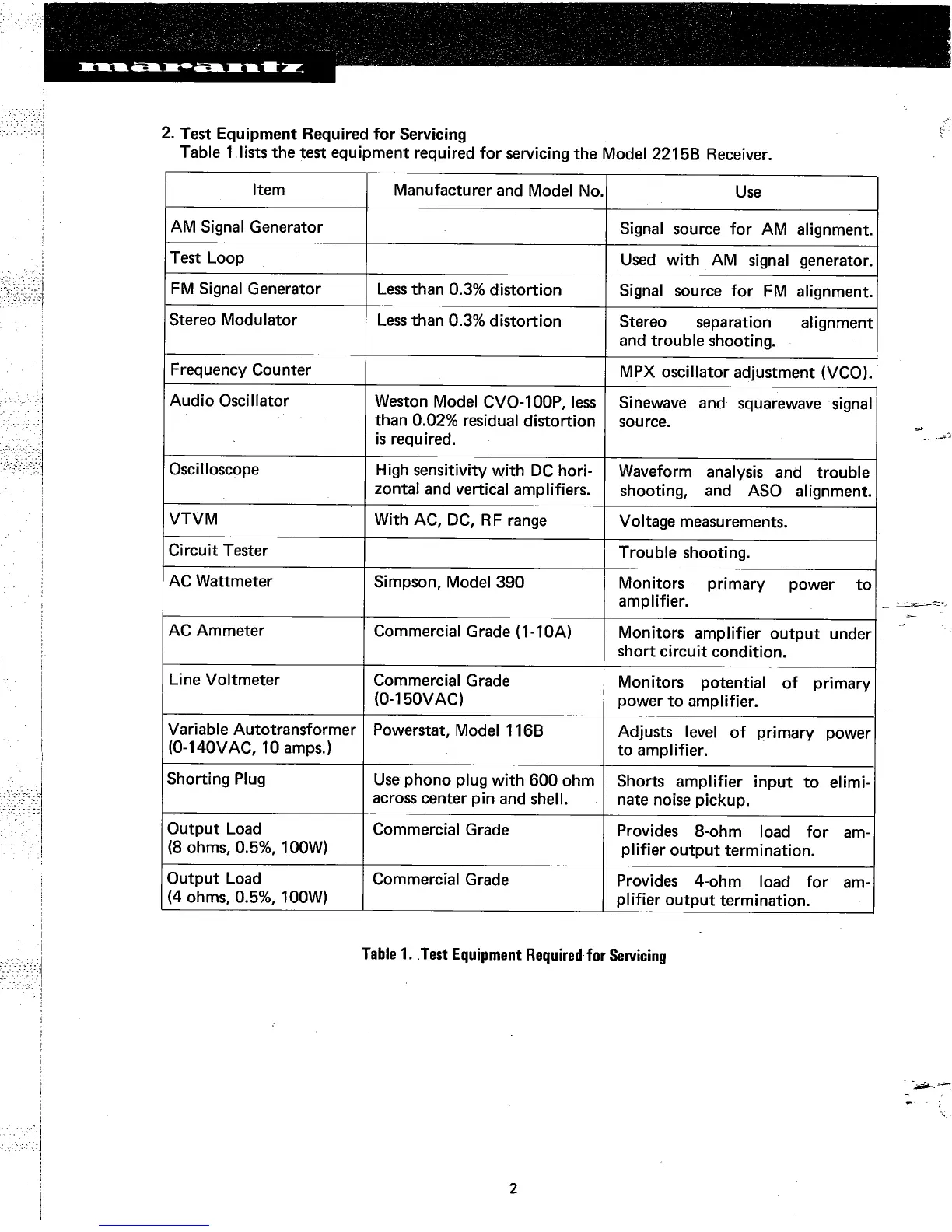 Marantz 2215B - Servicing Test Equipment Requirements