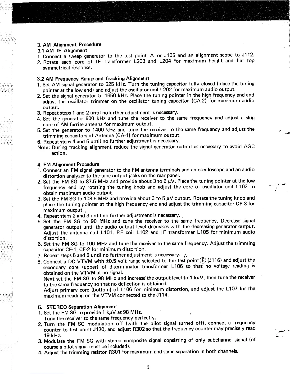 Marantz 2215B - Alignment Procedures: AM, FM, and Stereo Separation; AM Alignment Procedures; FM Alignment Procedure; Stereo Separation Alignment