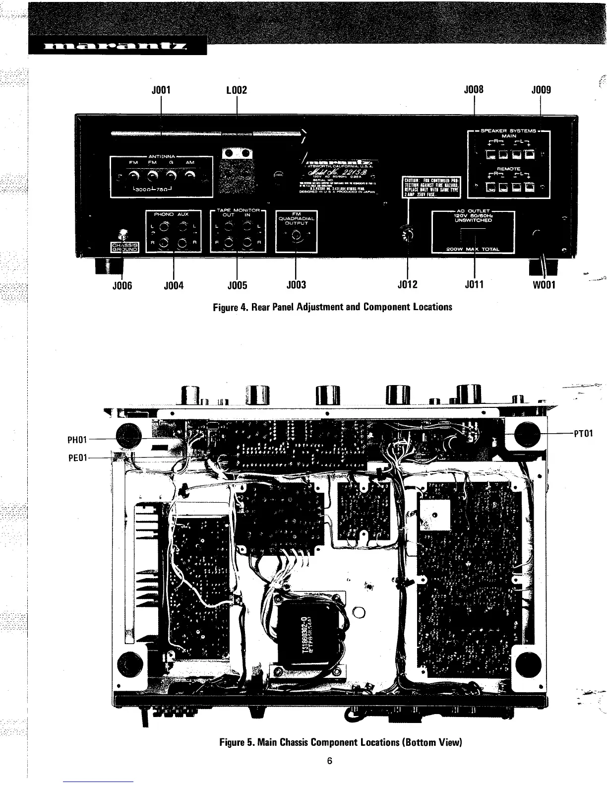 Marantz 2215B - Rear Panel Adjustment and Component Locations; Main Chassis Component Locations (Bottom View)