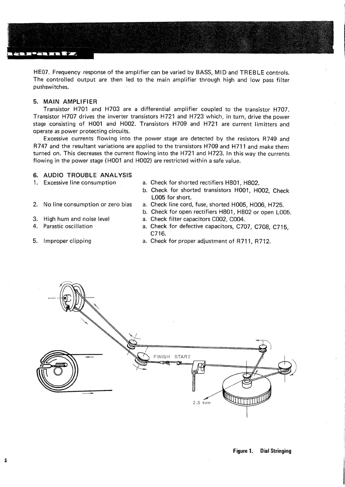 Marantz 2220B - Main Amplifier; Main Amplifier Circuit; Audio Trouble Analysis; Common Audio Faults