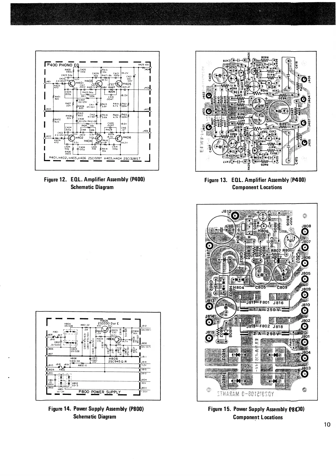 Marantz 2225L - EQL. Amplifier Assembly (P400) Schematic Diagram; EQL. Amplifier Assembly (P400) Component Locations; Power Supply Assembly (P800) Schematic Diagram; Power Supply Assembly (P800) Component Locations