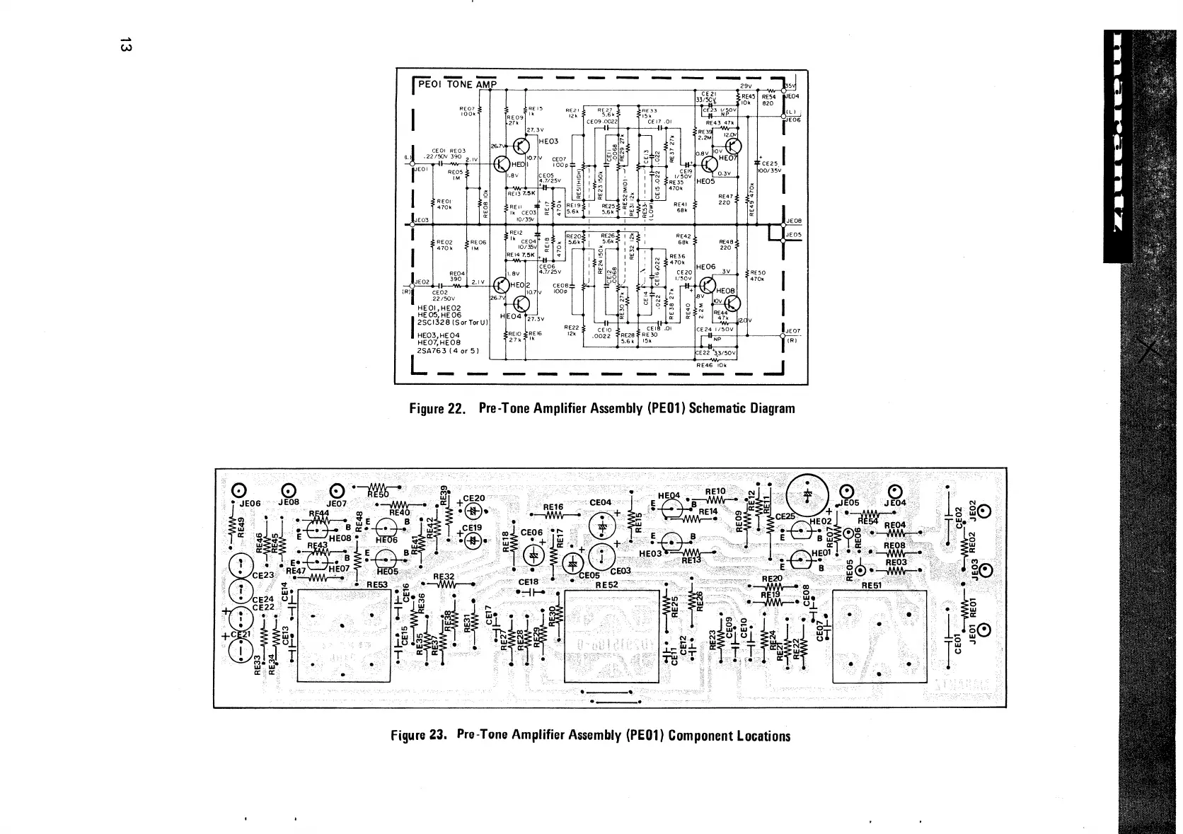 Marantz 2225L - Pre-Tone Amplifier Circuit and Layout; PE01 Schematic and Component Locations