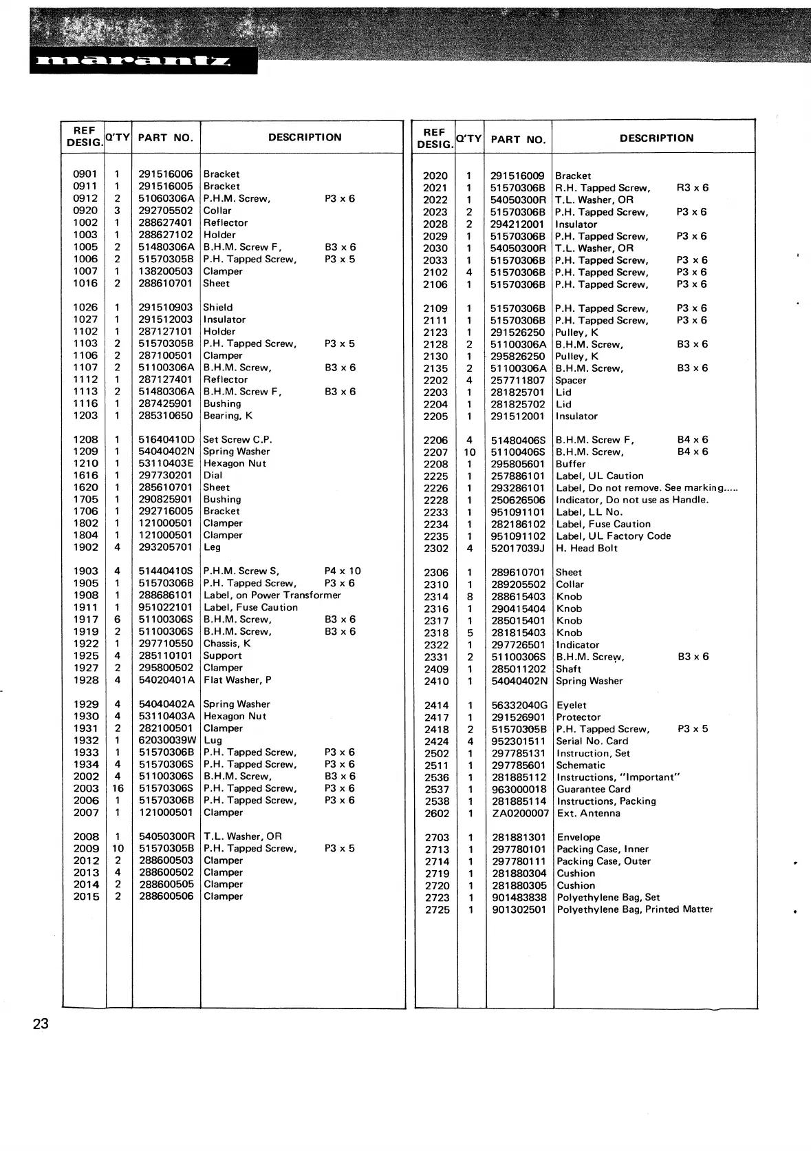 Marantz 2225L - Parts List - Sections F-Z; Component Details F-Z