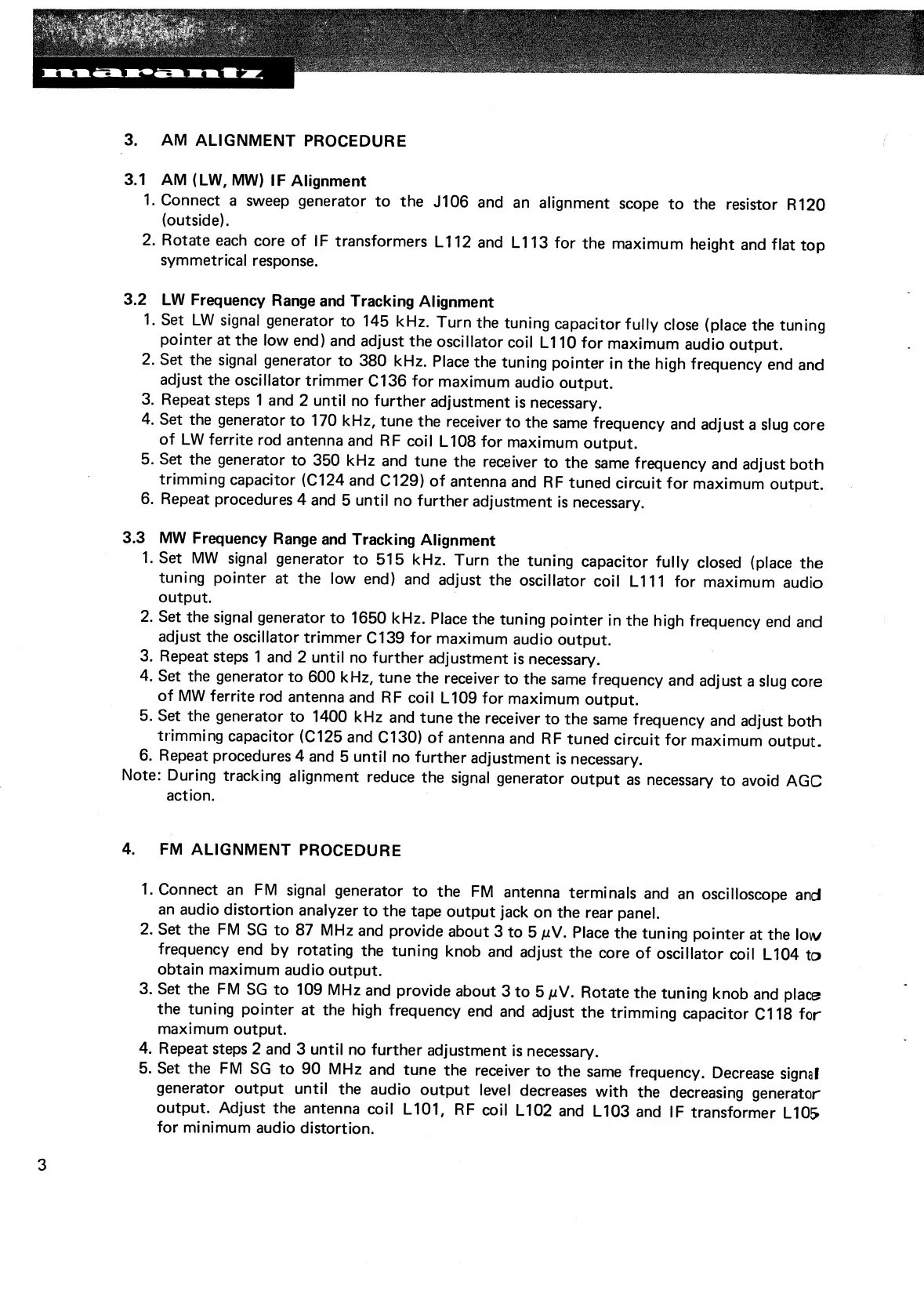 Marantz 2225L - AM Alignment Procedures; AM IF, LW, and MW Alignment