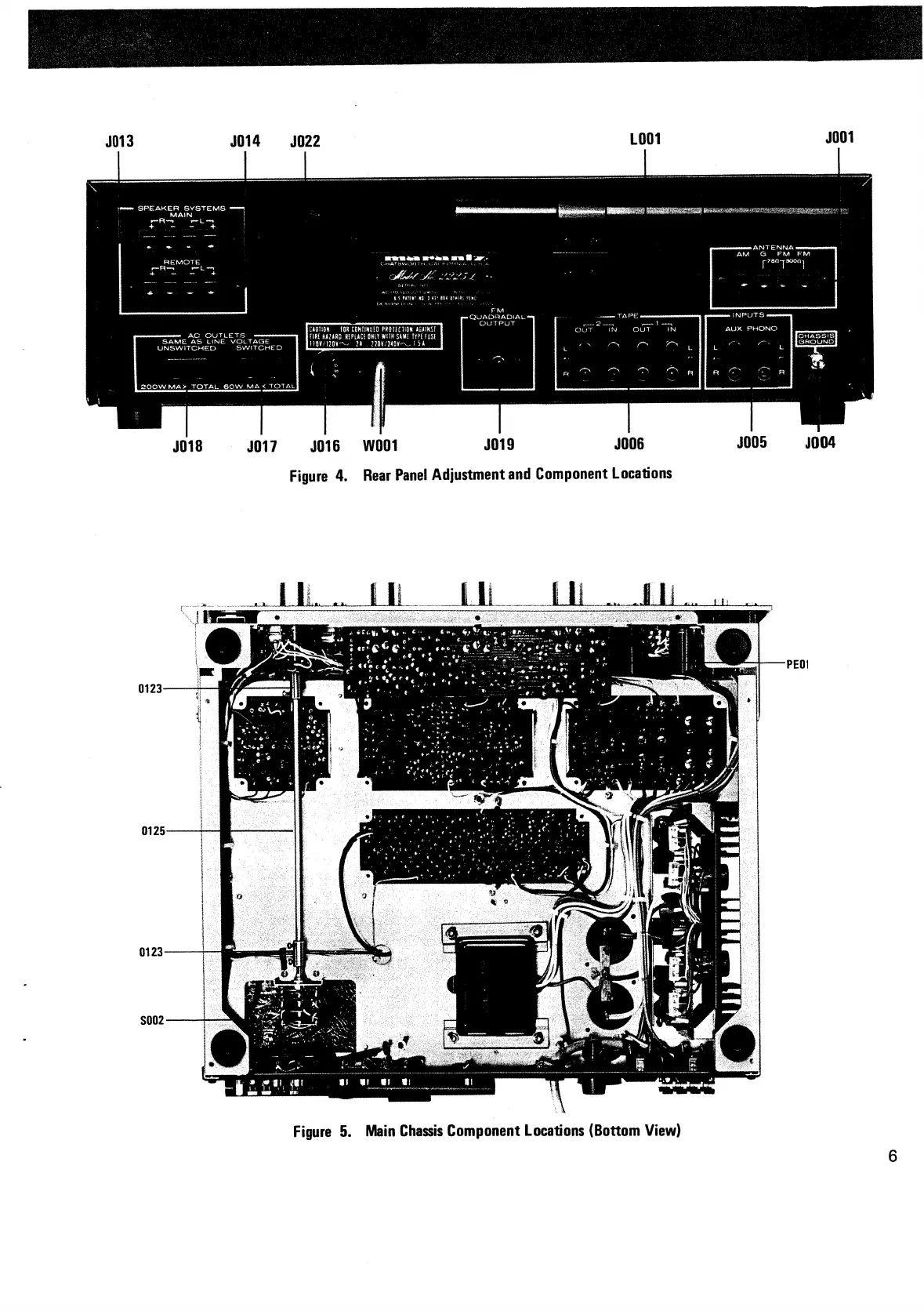 Marantz 2225L - Rear Panel Adjustment and Component Locations; Main Chassis Component Locations (Bottom View)