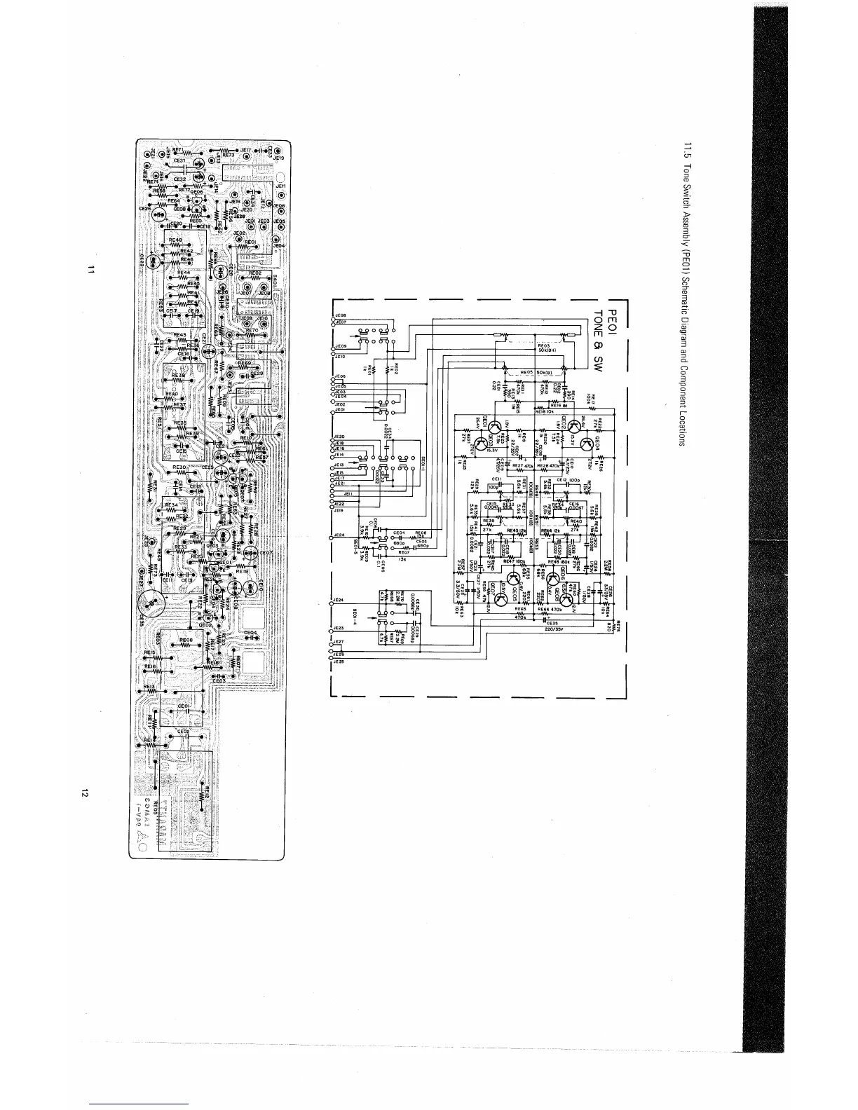 Marantz 2226B - Tone Switch Assembly (PE01) Schematic Diagram and Component Locations