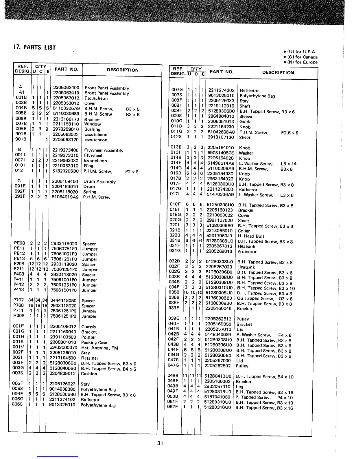 Marantz 2226B - 17. PARTS LIST