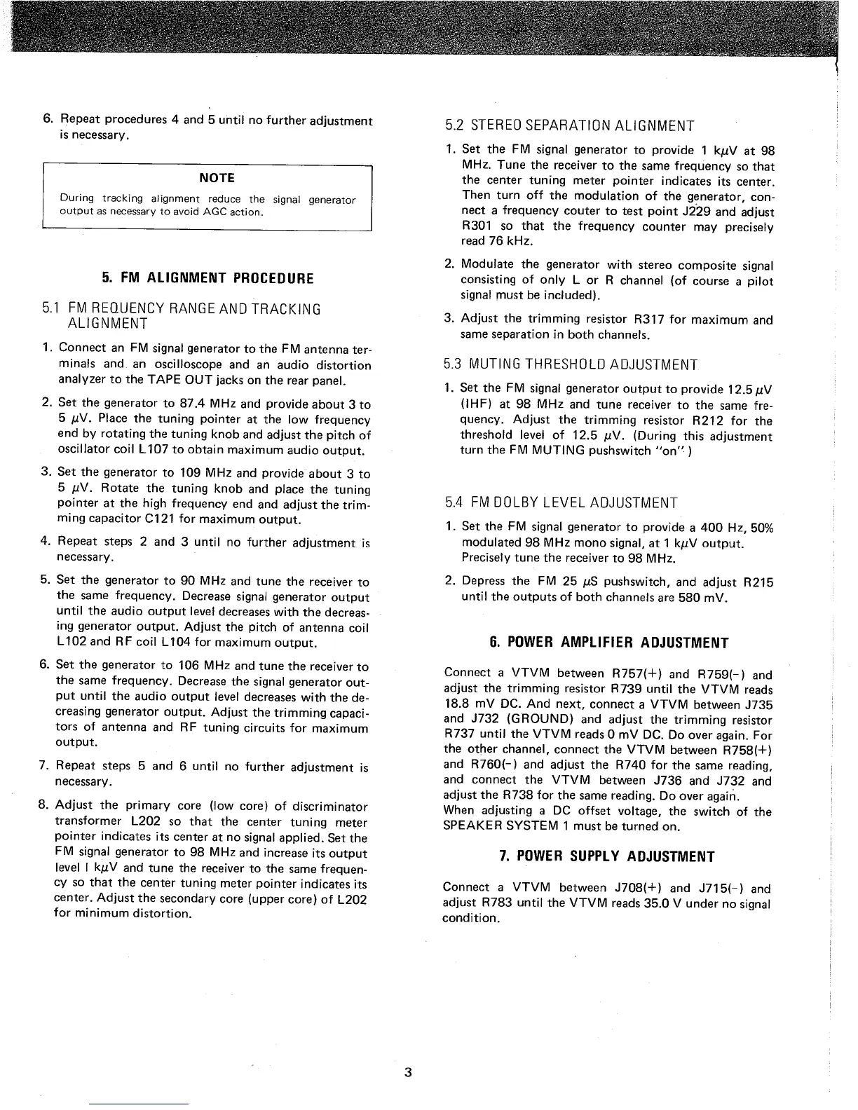 Marantz 2226B - 5. FM ALIGNMENT PROCEDURE; 5.1 FM REQUENCY RANGE AND TRACKING ALIGNMENT; 5.2 STEREO SEPARATION ALIGNMENT; 5.3 MUTING THRESHOLD ADJUSTMENT