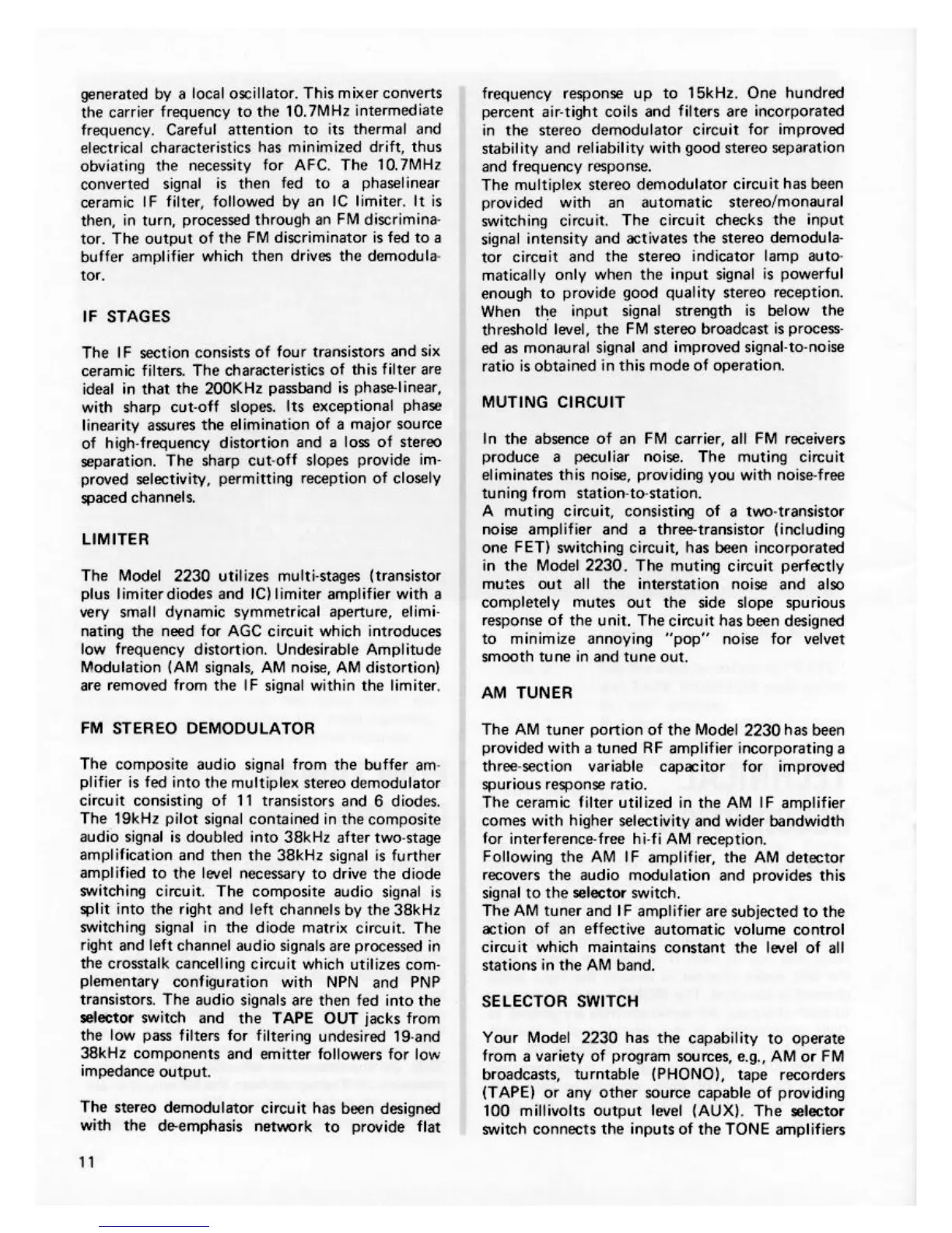 Marantz 2230 - Functional Circuit Descriptions; IF Stages and Limiter; FM Stereo Demodulator; Muting Circuit