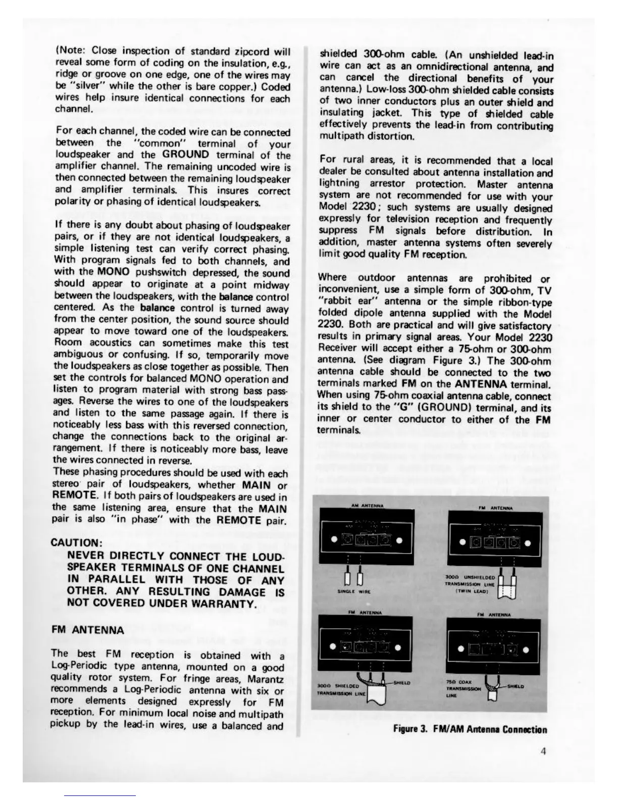 Marantz 2230 - Speaker and Antenna Setup; Speaker Phasing and Polarity; FM Antenna Connection Types