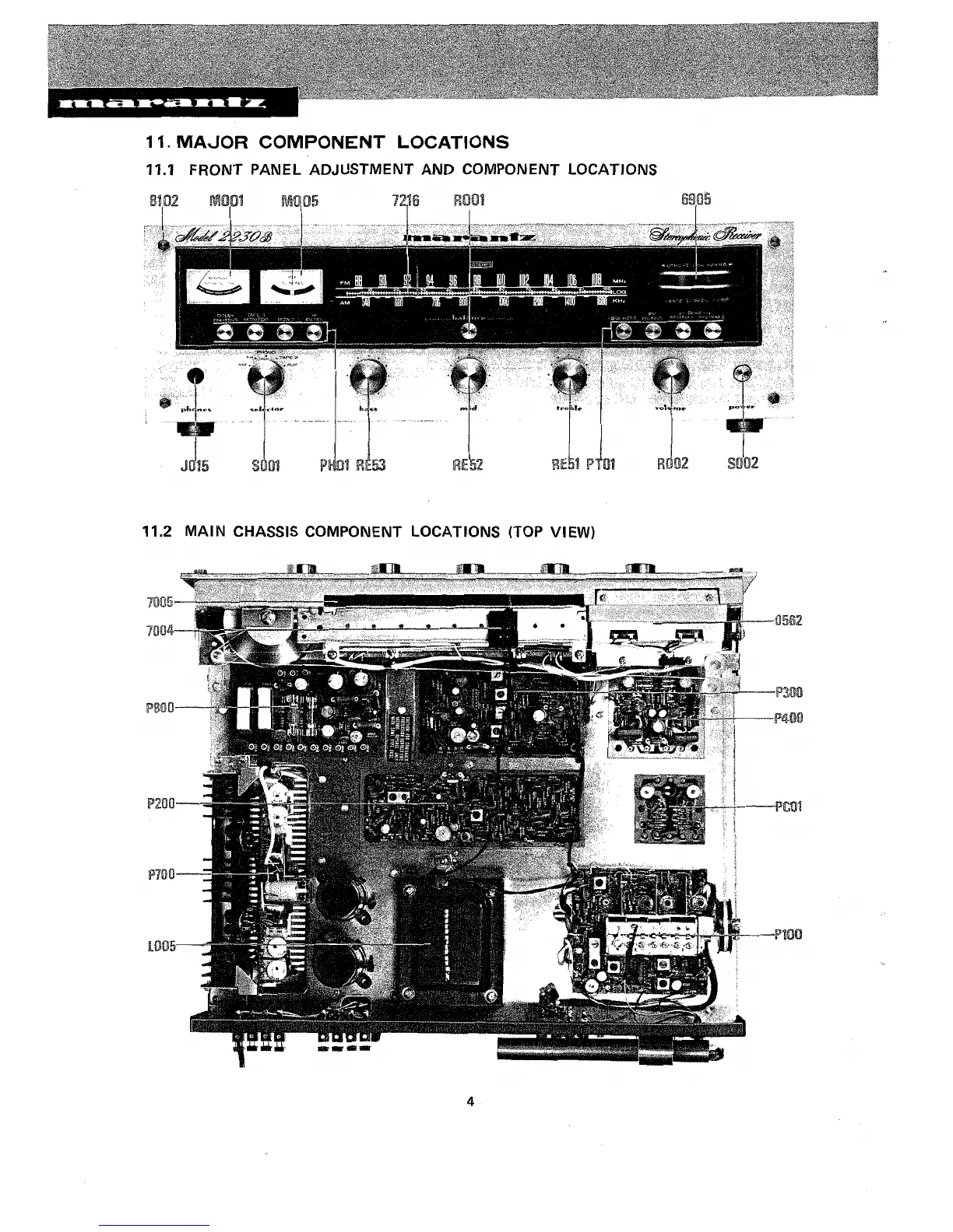 Marantz 2230B - Special Adjustments; Component Locations and Diagrams; Major Component Locations Overview