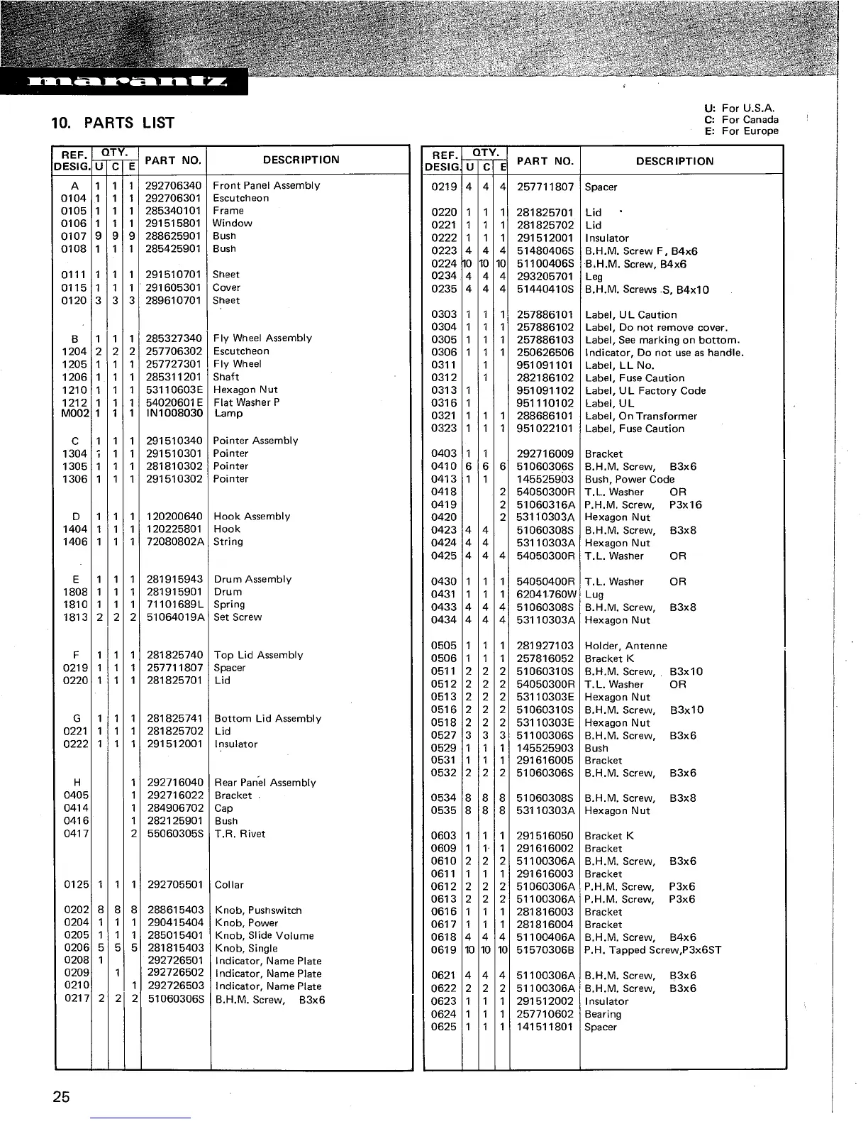 Marantz 2235 - Parts List