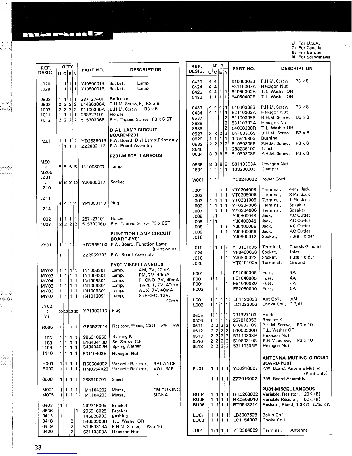 Marantz 2235B - Dial Lamp Circuit Board-PZ01; PZ01-Miscellaneous; Function Lamp Circuit Board-PY01; PY01-Miscellaneous