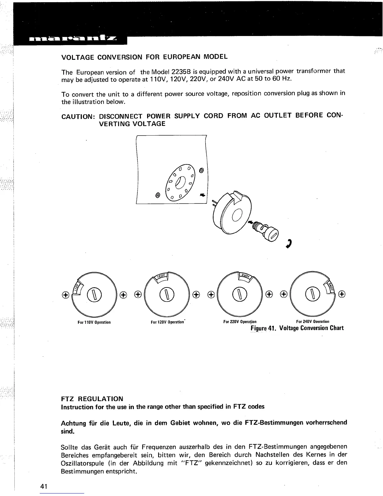 Marantz 2235B - Voltage Conversion for European Model; Voltage Conversion Chart; FTZ Regulation