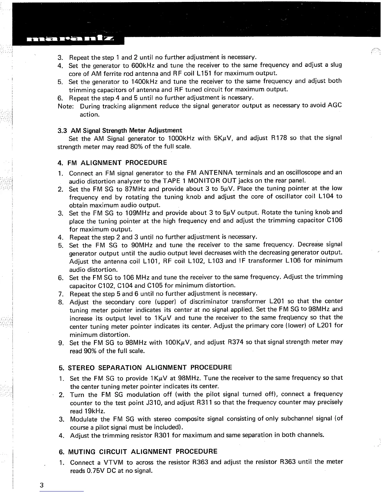 Marantz 2235B - Marantz 2235 B Service Test Equipment; Marantz 2235 B AM Alignment Procedures; AM IF Alignment; AM Frequency Range and Tracking Alignment