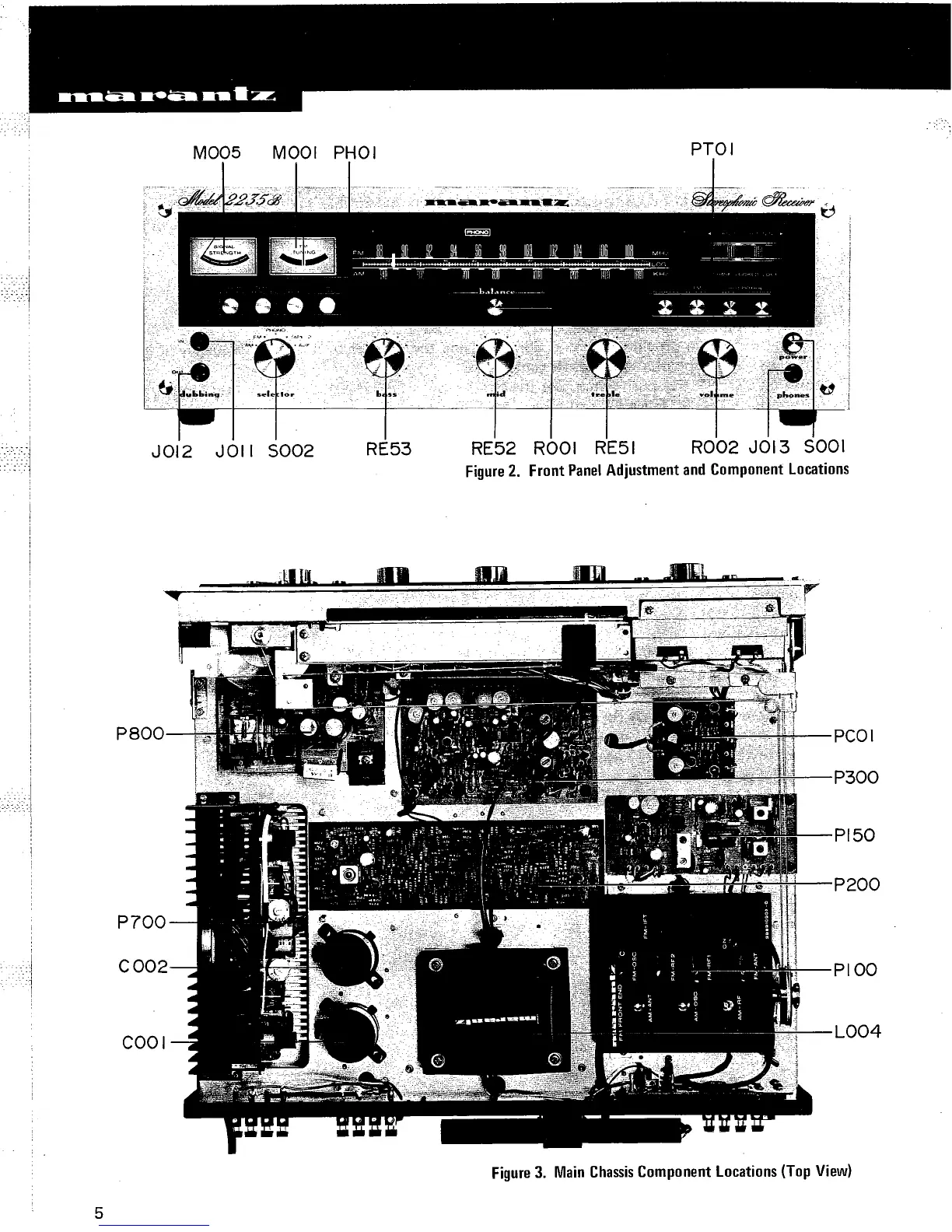 Marantz 2235B - Front Panel Adjustment and Component Locations; Main Chassis Component Locations (Top View)