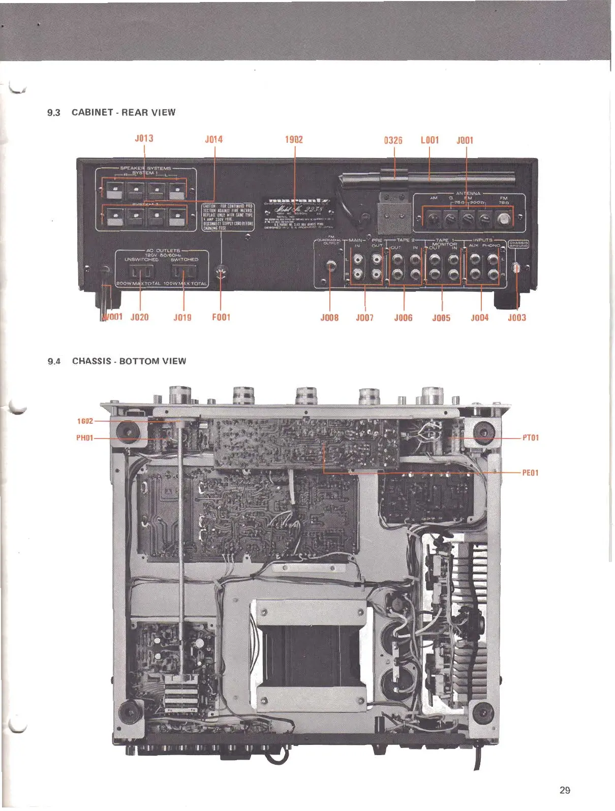 Marantz 2238 - Cabinet - Rear View; Chassis - Bottom View