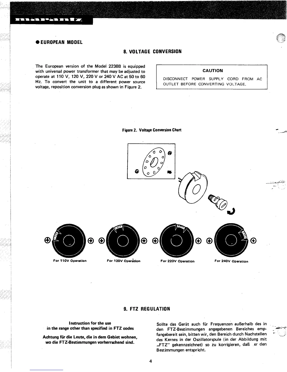 Marantz 2238B - Voltage Conversion; FTZ Regulation