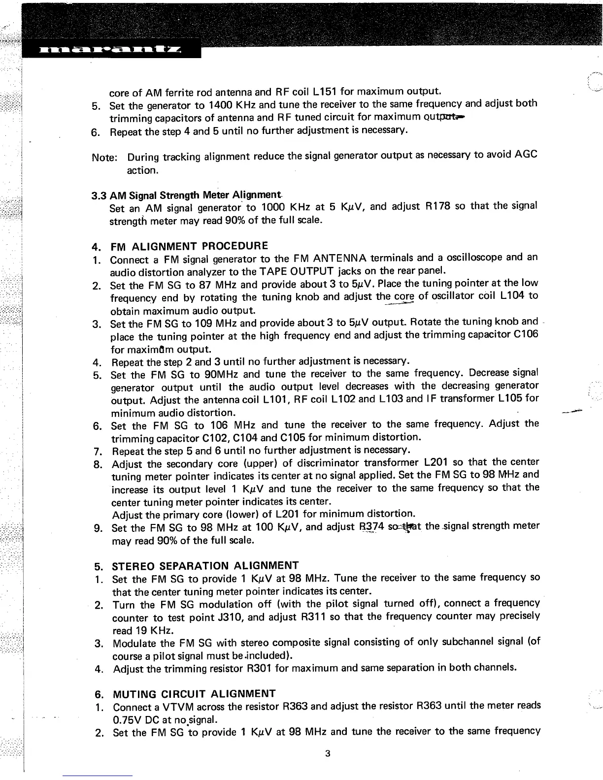 Marantz 2240B - FM Alignment Procedure; Stereo Separation Alignment; Muting Circuit Alignment