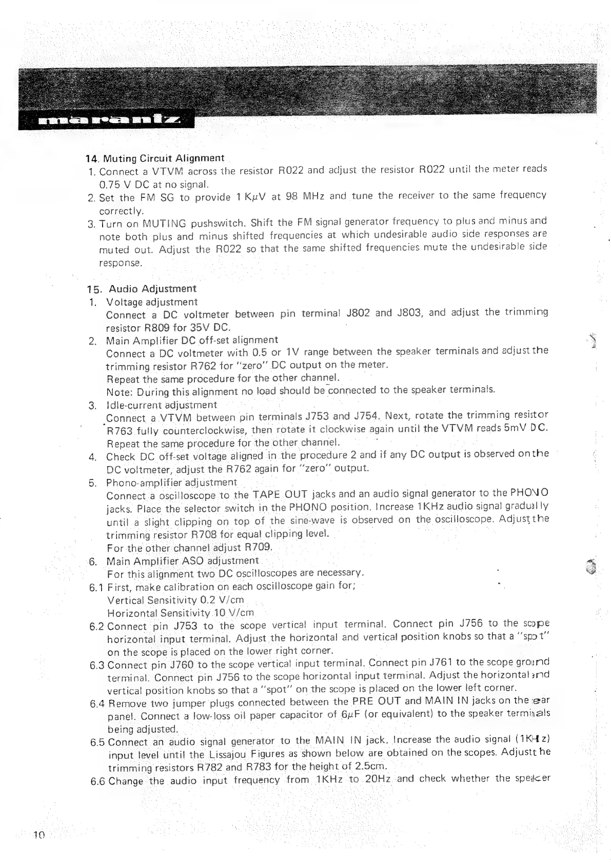 Marantz 2245 - Audio Adjustments; Main Amplifier DC Off-set Alignment; Idle-Current Adjustment; Main Amplifier ASO Adjustment
