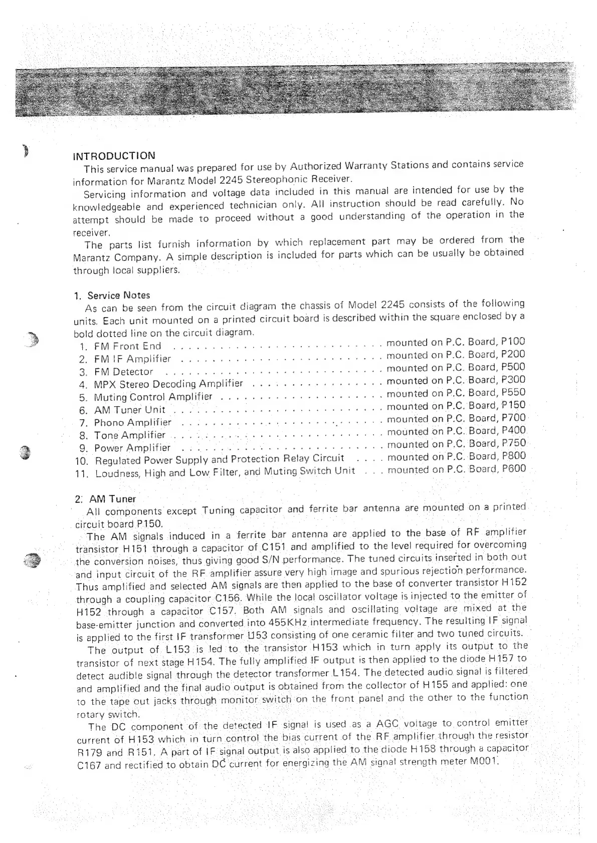 Marantz 2245 - Introduction; AM Tuner Operation
