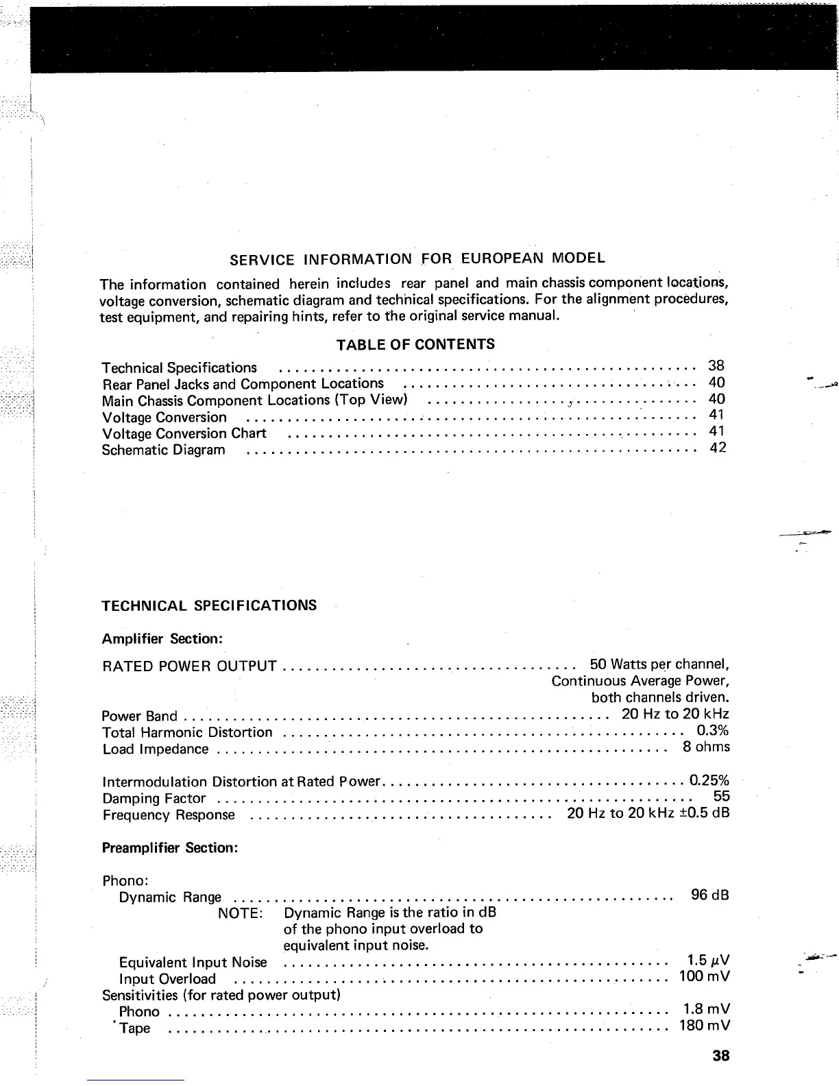 Marantz 2250 - European Amplifier Section Specs; European Preamplifier Section Specs