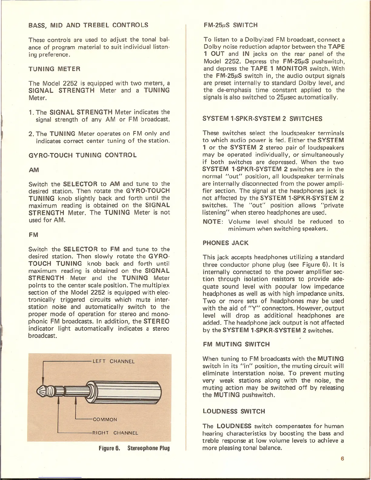 the FM-25/lS switch in, the audio output signals