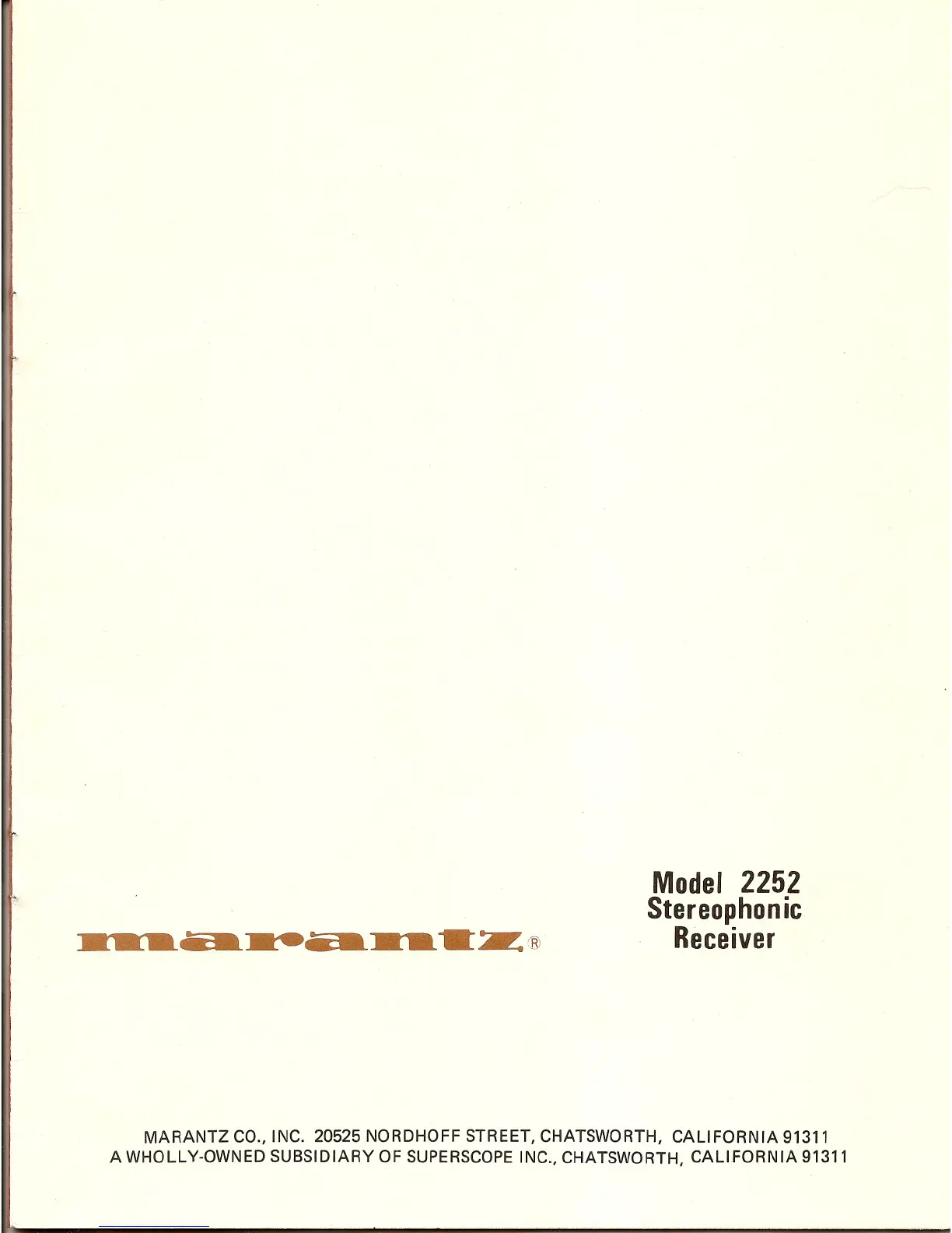 MARANTZ CO., INC. 20525 NORDHOFF STREET, CHATSWORTH, CALIFORNIA 91311