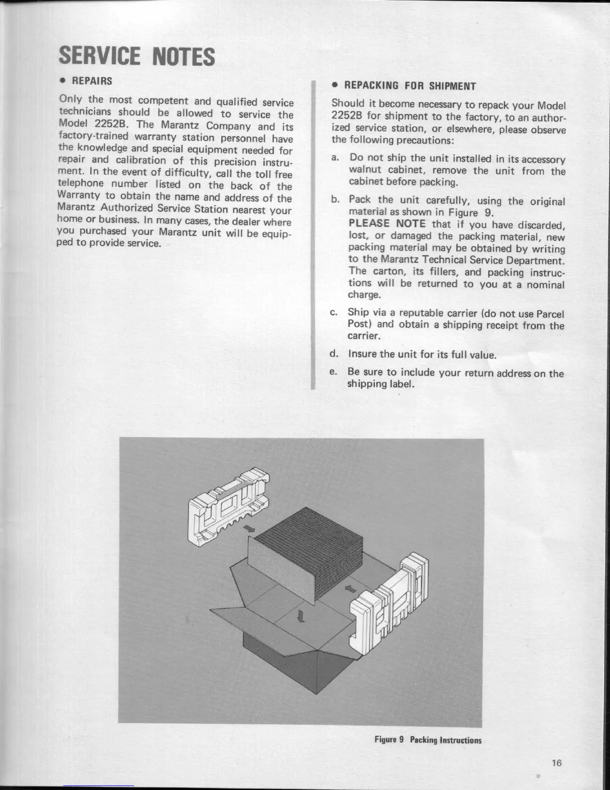 Marantz 2252B - Service Notes; Repairs; Repacking for Shipment